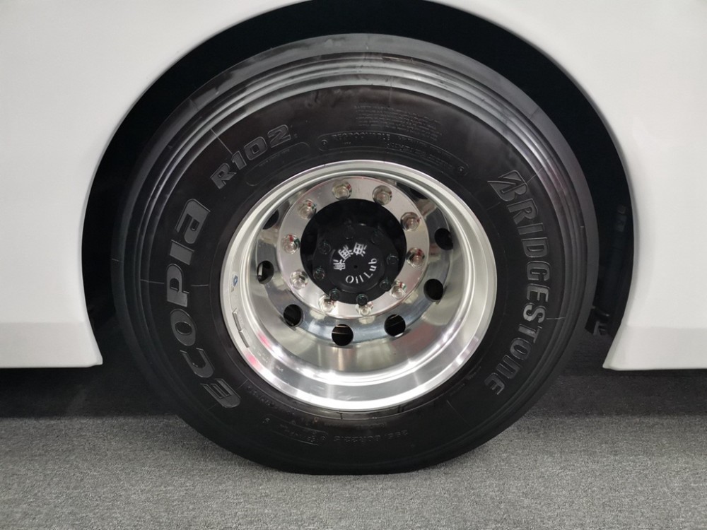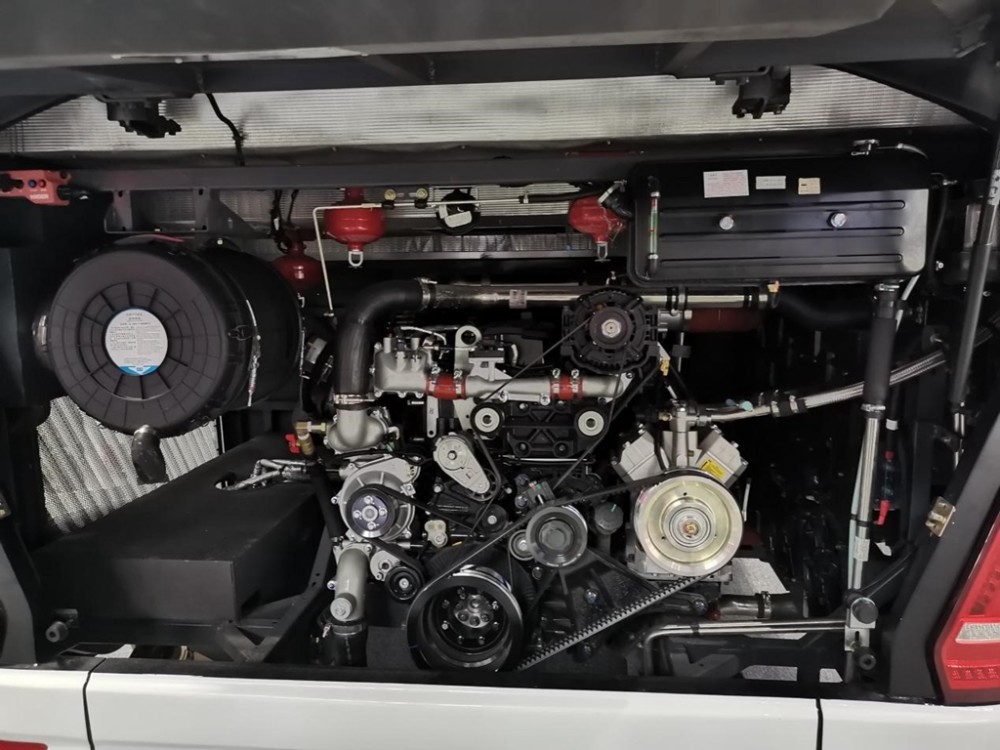 海格旅行家系列有多个车型,这次展车的型号是KLQ6127BAE61型,标注于车尾。为了满足不同用户的需求,海格旅行家系列有多种柴油发动机可供使用。展车搭载的是玉柴YCK09380-60型柴油发动机,满足国六排放标准,发动机额定功率280Kw /1900r /min约380马力,发动机最大净功率275Kw /1900r /min约374马力。离合器采用SACHS离合器。变速箱来自法士特6速手动气助力变速箱,选装法士特AMT变速箱。