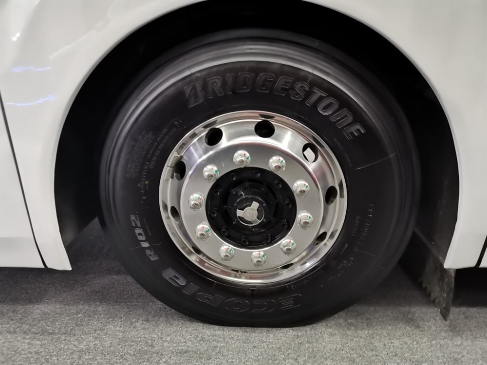 前轮带液压助力转向,展车采用宏鑫铝合金轮圈,前后盘式制动。