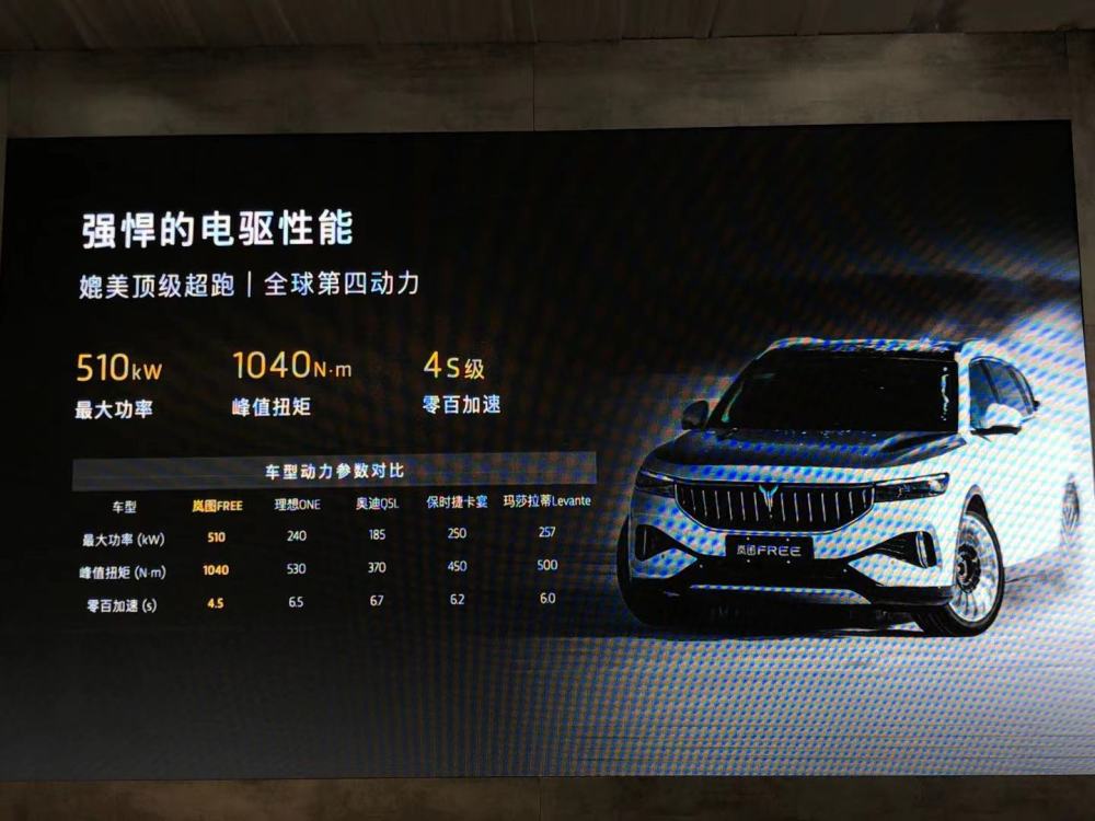 首先肯定是动力好加速快。岚图FREE四驱纯电版最大功率510kW,换算成马力就是694ps,峰值扭矩更是达到惊人的1040N·m!在如此强大的数据下,0-100km/h加速成绩仅需4.7秒(增程式4.5秒)。诚不欺我,在实际的试驾过程中,参谋君的确有被岚图FREE强大的加速性能给震惊。尽管岚图FREE秉承“唯快不破”的理念,但电动车的G值和传统燃油车略有不同,那种直窜窜赤裸裸的生理排斥需要多适应几次。当然,相信没有几个用户会无时不刻开着这台接近5米级中大型SUV探索速度与激情吧!