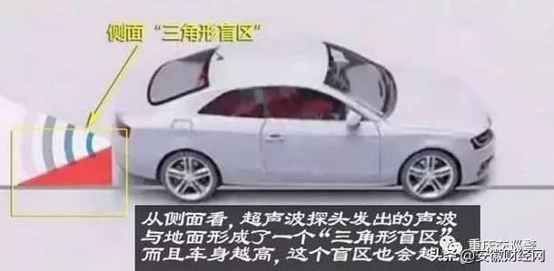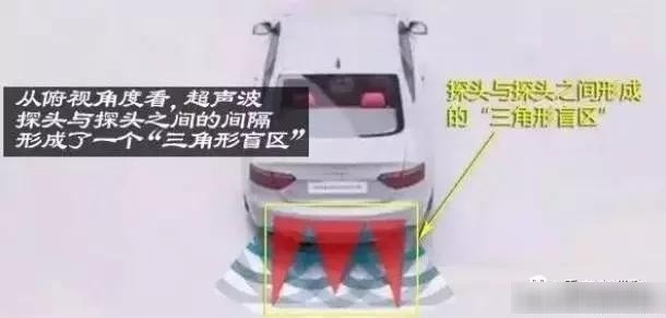 倒车雷达之类的电子辅助设备,由于雷达的发射范围是呈圆锥状的,因此倒车雷达主要的盲区范围就是雷达超声波探头发出的声波与声波之间没被“照射”到的范围。
