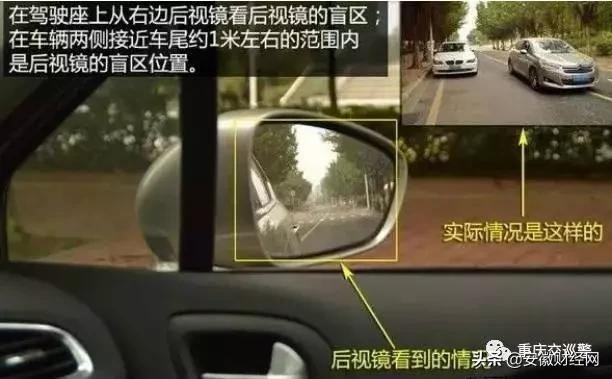 此外,汽车后视镜也存在有盲区,大概位于距离右侧车尾约1米的位置,日常开车过程中一定要注意。