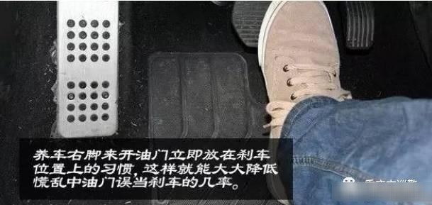 我们在开车过程中,要养成右脚若离开油门就立即放在刹车位置的习惯,这样可大大降低在慌乱之中误把油门当成刹车的几率。