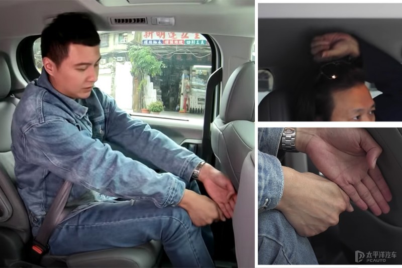 而在保证第二排座椅不变的情况下,赛那的第三排头部空间剩余两指(三指不到)、腿部空间剩余一拳两指。