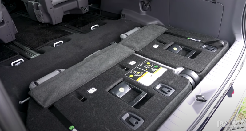 第三排座椅采用了4:6比例的放倒,并且靠背支持多角度调节;折叠表现上,赛那第三排座椅支持一键手动折叠(实际体验可单手完成),同时由于第三排座椅可折叠至后备箱下凹槽内,因此可以实现纯平的地台表现。
