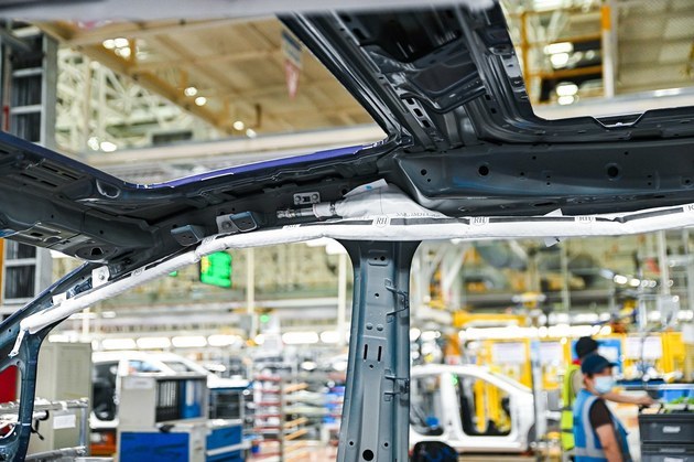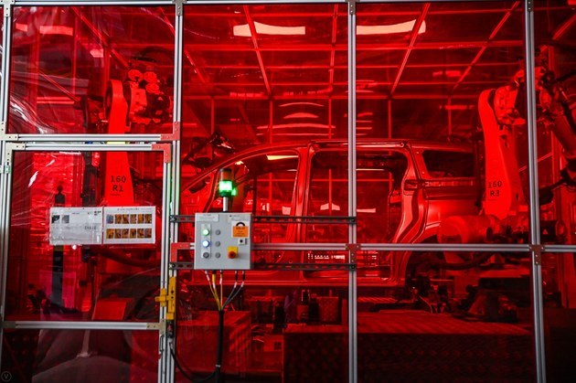 车身车间采用激光焊接工艺,共有296套焊接机器人系统,焊点自动化率已达到99.9%。同时还采用柔性化生产技术、APC全自动托盘运输工艺、在线测量技术及OpenGate专利技术等,以最安全技术和工艺塑造乘员舱,保证下线车辆每一台都是精品。
