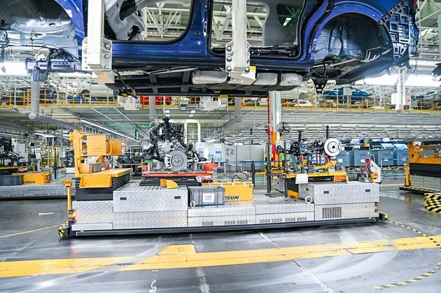 郑州工厂总装车间占地8.66万平方米,由内饰装配区,底盘装配区,外装及最终装配区、性能检测区及物流配料区五个区域组成。共包含5条主线、8条分装线、175台设备,主要生产轿车、SUV、豪华MPV等多类车型,包含8款发动机、13种变速箱、287款车型配置。