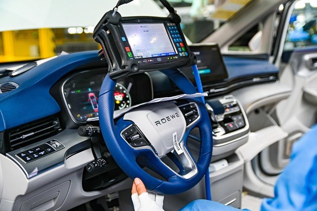 生产过程中的监测也是必不可少的,郑州工厂通过100%在线测量,实时、动态监控白车身,及时发现误差,并根据当前测量数据和历史数据规律,对产生误差的原因做出客观判断,通过调整相关夹具或检具,确保每个白车身精度满足产品技术要求。