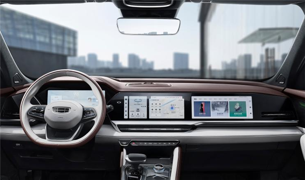 值得一提的是,新车配备了亿咖通/伟世通/高通共同打造的新一代智能座舱,长度约100cm的“贯穿式”中控屏设计(中控屏+副驾娱乐屏),进一步彰显了其科技感,同时中控台采用的是双拼色设计,相比霸气的外观多了一分韵味,整齐的缝线工艺与细腻的材质用料尽显与众不同。