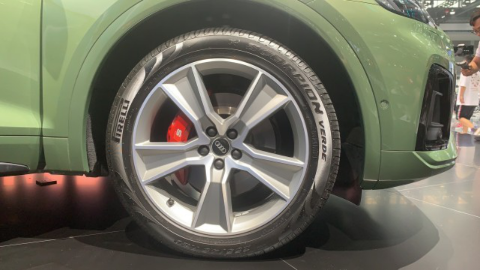 新车标配20英寸铝合金轮毂,匹配红色六活塞制动卡钳,轮胎尺寸为255/45 R20。另外支持选配21寸轮毂。