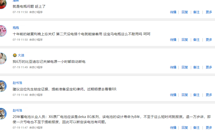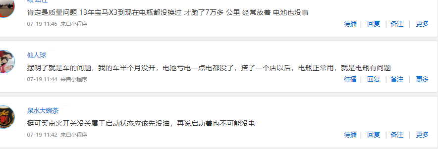 那么郭先生这个问题,宝马厂家如何回复呢?记者也拨通了厂家电话,但是厂家仅表示记录并未给出任何有效回复。那么郭先生这种情况正常么,记者也联系了山东交通学院高级工程师施为民,对方认为在驾驶人正常使用以及电瓶没有外部损伤的前提下,即便开空调或者听音响,这种情况的放电对电池影响不大。此外施为民介绍,可以先将电瓶取下充满,然后再放回让客户正常驾驶,如果再次出现亏电问题,有可能就是电瓶本身故障。