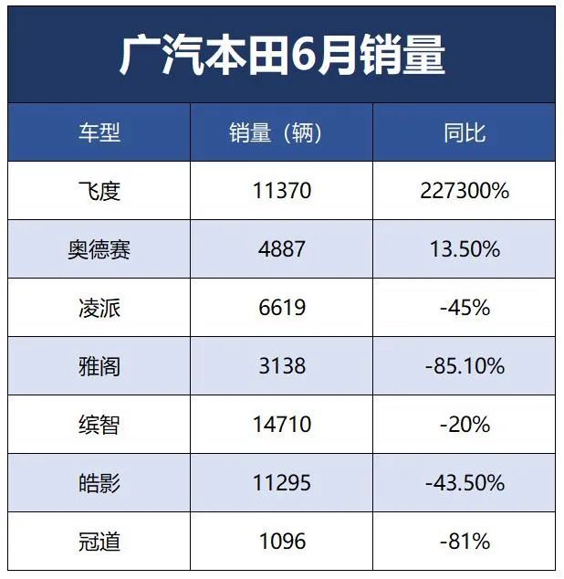 据乘联会最新数据显示,广汽本田6月份共销售了53745辆新车,同比去年下滑了34.9%,而这也是去年疫情之后,广汽本田销量首次出现单月同比下滑的情况。值得注意的是,在这5.4万辆销售的新车中,雅阁仅占了其中的3138辆,同比去年下跌了85.1%。而今年5月份的时候,雅阁还能卖出16527辆。