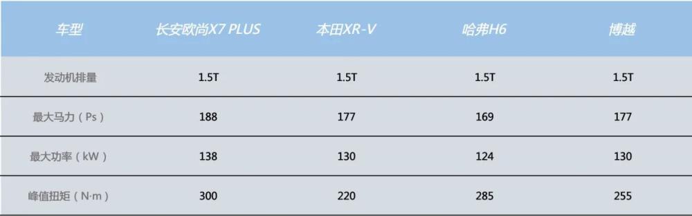 既然是PLUS车型,动力自然也要做到PLUS。长安欧尚X7 PLUS搭载蓝鲸新一代NE1.5T高压直喷发动机,峰值功率138kW,峰值扭矩300N·m。这是怎样的概念呢?多说无用,数据就是最好的证明。