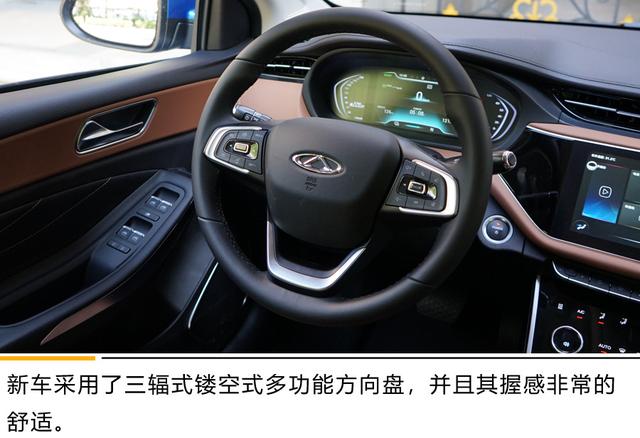 艾瑞泽e采用双色搭配的三屏环绕智慧数字驾驶座舱,中控部分大量采用了软质材料进行覆盖,整体提升了内饰的高级感。并且其独有的非对称式“未来之翼”悬浮仪表台将行车信息全部标示在最醒目处,实现驾驶者视线“零”转移,对驾乘者的潜在安全起到了人性化的保护。