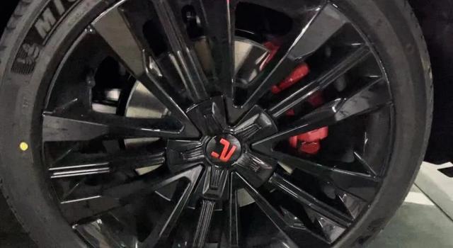 既然来店里看车了,自然试驾环节是最主要的啦。跟着销售来到地下停车场,还瞅见了一台黑武士版本的Marvel R,销售说这外观得加2000元,感觉还是挺值的,就问问你,红色的刹车卡钳骚不骚气!