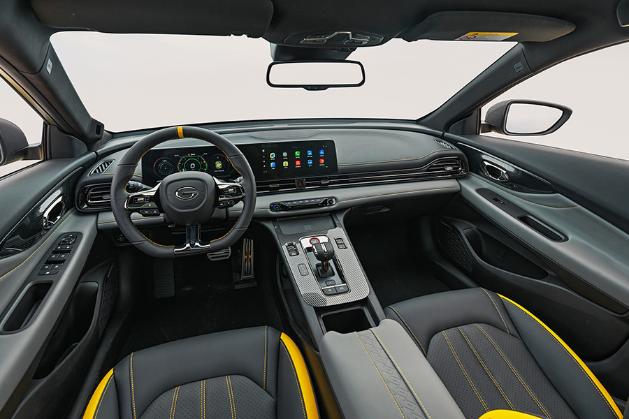 那么作为一台家用车,影豹在公共道路上又有何表现呢?首先,加速能力自然不用说,在调整到运动模式或者运动+模式后,驾驶者想要做加速超车、变道等动作时,影豹也能成为一名合格的“执行者”。而在舒适模式下,驾驶者依旧可以自行开启排气阀门,享受悦耳的声浪。当然,此时的动力响应则会稍慢一点,可是加速过程确实可以用“丝滑”来形容。而在经济模式下,影豹则会收敛起脾气,回归到一台家用车的本职工作中,此时排气阀门无法开启,而这都是为了提供给乘员足够舒适的乘坐体验。
