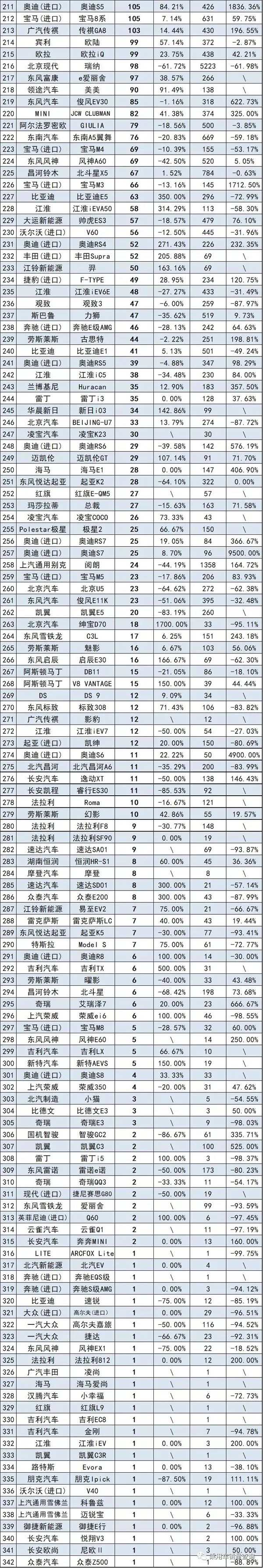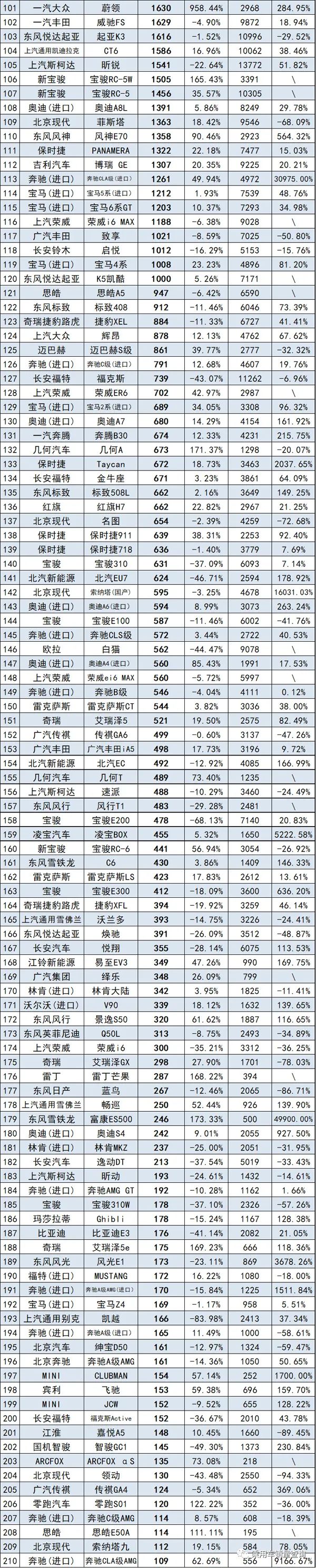 当月销量中,东风日产轩逸仍以较大优势稳居首位,尽管上汽大众新朗逸奋力追赶,但二者之间差距仍然十分明显;“国民代步小车”宏光MINI EV自升级版车型马卡龙上市后,竞争力更是大幅提升;别克全新英朗自回归四缸机后凭借出色的营销和极高的性价比,迅速成为国内家用轿车销量占比极大的车型之一;排名前几位的紧凑型家轿如一汽丰田卡罗拉、雷凌/大众速腾、宝来等车型成为国内家庭购车的必选车型,其销量以及排名十分靠前;中级车阵营内本月丰田凯美瑞表现抢眼,再次超越本田雅阁成为中级车领域新的“标杆”,上汽大众帕萨特新款即将上市,现款优惠力度较大,销量仍处于缓慢增长期;被丰田寄予厚望的亚洲龙本月销量同比几近“腰斩”,缺少价格优势的一汽丰田亚洲龙短期内销量难有较大提升;豪华品牌阵营中,中级车以华晨宝马3系本月“力压”即将换代的北京奔驰C级;豪华C级车领域一汽大众奥迪A6L仍然“以价换量”,成功超越中期改款的宝马5系和北京奔驰E级;尽管特斯拉Model 3在国内事故不断,口碑下滑明显,但仍然阻挡不住其强劲的势头;国产自主品牌仅长安逸动和吉利帝豪以及比亚迪秦等三款车型“跻身”排行榜前20位,未来国产轿车仍有较大的增长空间。