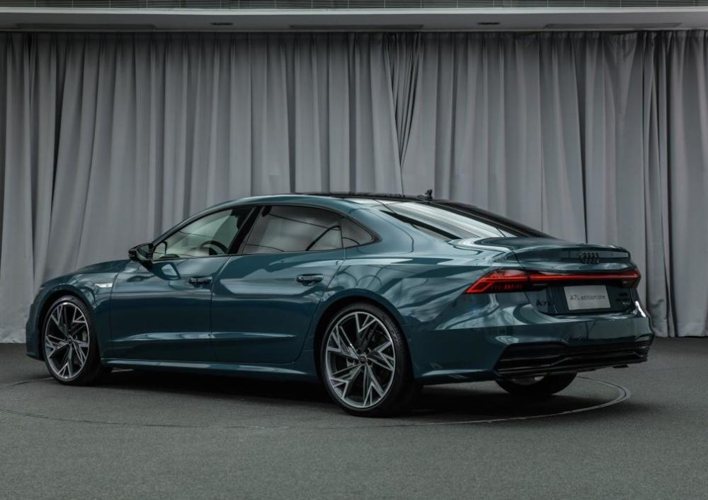 侧面,和奥迪A7相比,变化就非常大了。首先,它取消了溜背造型的C柱,变成了一个行政级别的三厢轿车的样式。其次,它就是大幅度的加长。相比A7车身加长100mm,轴距更是加长98mm。整车造型也没有因为加长而变得不协调,三厢的设计让车身看起来更加修长。