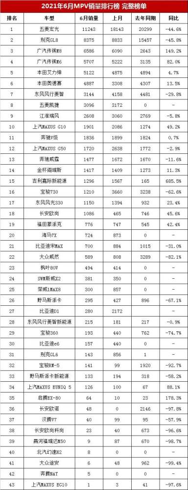近日,乘联会发布6月份MPV销量排行榜完整版,共有43款MPV参与排名,MPV属于小众车型,市场不大,销量也不太高。