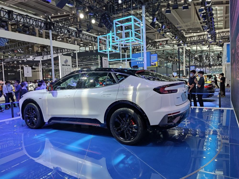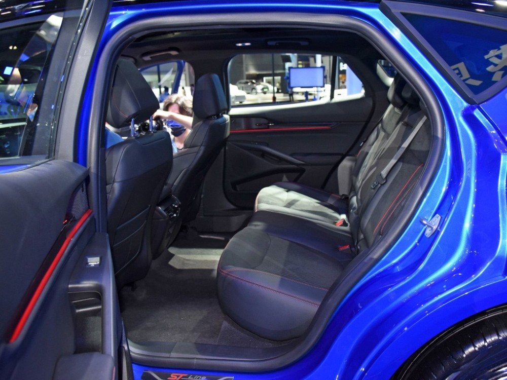 侧面看过去第一感觉就是视觉冲击力很大,甚至让人搞不清它究竟是跨界车还是SUV,轮廓造型与CX-4比较接近。上扬的窗线营造出一种蓄势待发的俯冲姿态,双色车身和溜背式车顶以及大尺寸轮毂,让这辆EVOS散发出强烈的运动气息。此外,虽然它是一款燃油车,但还是使用了成本较高的隐藏式门把手,显得特别有仪式感。尺寸方面,新车长宽高分别为4920*1920*1600mm,轴距为2945mm。