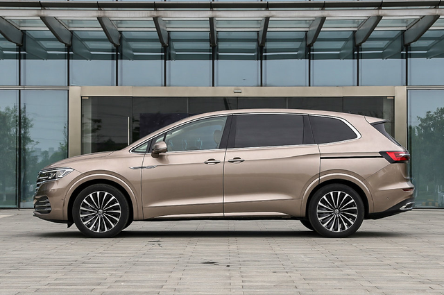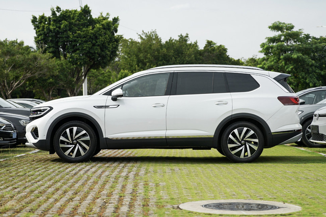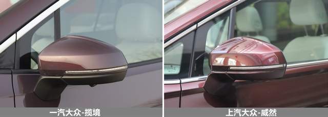 其实仔细观察后,你可以发现揽境的外观造型与上汽大众另一款中大级别车型非常相像,它就是威然。首先是A柱的设计部分,揽境并没有采用常见的SUV设计风格,而是用了类似MPV或轿车常用的大倾斜角设计,这种角度的倾斜甚至让揽境在 A 柱部分多出了一个三角窗的位置。其次是车身线条,揽境在线条的运用上非常简洁,并没有营造出很方正的轮拱造型,平顺的车顶流线搭配柔和的腰线,两款车吻合度上几乎接近100%。完全一样的设计风格,导致了揽境在外界眼中就是一台MPV车型。