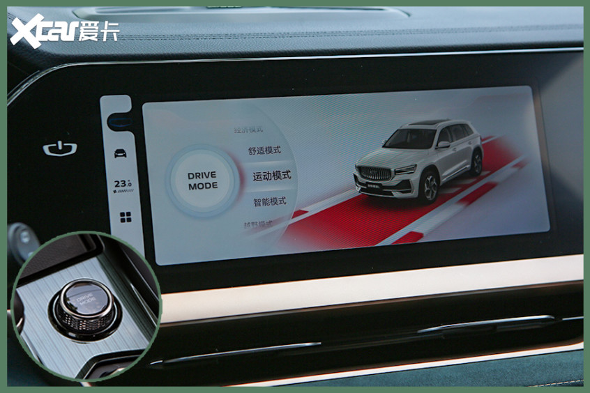 驾驶模式旋钮位于电子挡杆的右侧,驾驶员可以通过转动旋钮进行驾驶模式切换,只是当驾驶员向右转动旋钮时,屏幕显示的驾驶模式会向上转动,与我们常规的操作逻辑相反。感觉就像用惯了PC电脑的小伙伴刚换到MAC,会觉得触控板的滑动操作相反一样。但我相信这一问题能通过后期的FOTA升级进行更新。