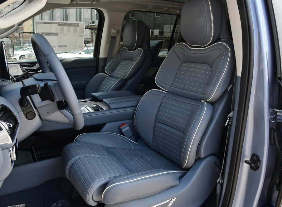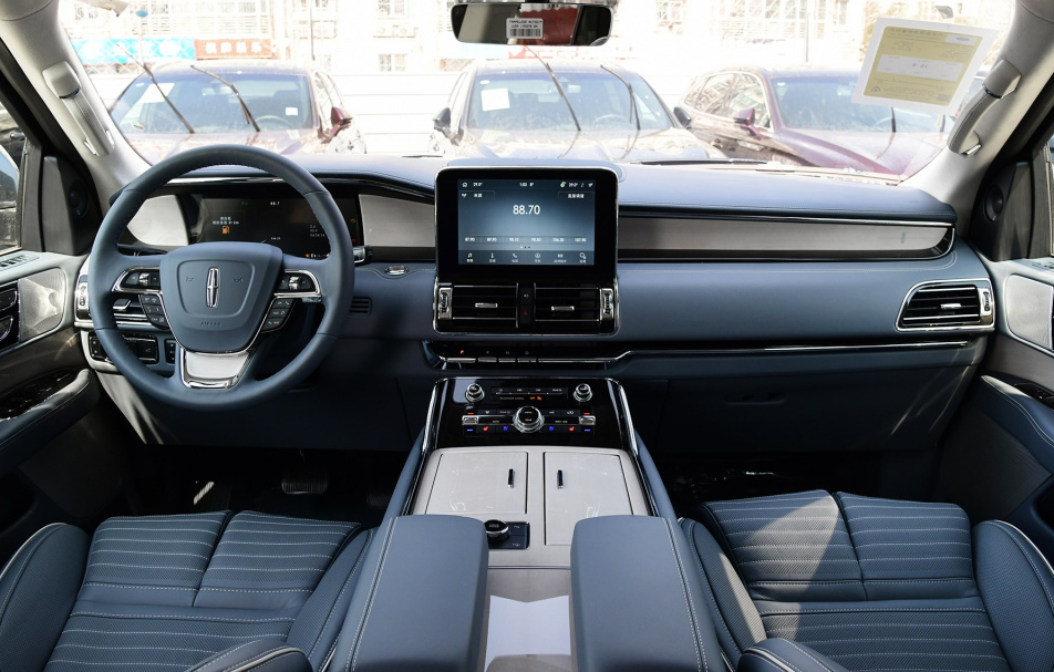 与此同时,林肯领航员的前驾驶舱也是带给了我们不小的惊喜。其中控台简洁大气,多层次的镀铬装饰,以及蓝白相间的配色,则为其增添了不错的奢华气息。另外让人值得一提的是,林肯领航员的座椅绝对是它的一大特色,座椅宽大厚实,加上各项可调节功能,可让乘客享受到头等舱的惬意舒适。
