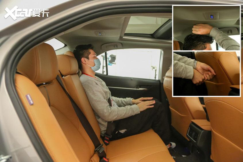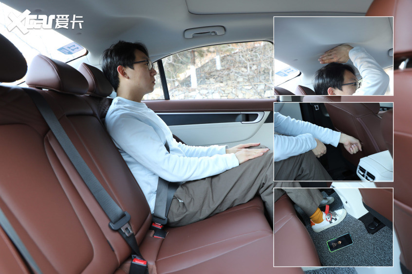 同一体验者坐进后排,并保持前排座椅位置不变,头部拥有一拳的空间余量,腿部则有两拳左右的空间剩余。