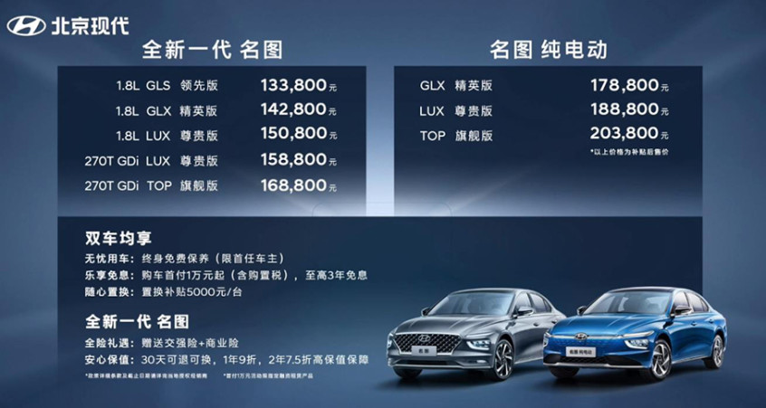 新车点评:全新名图定位为一款中型轿车,作为中国市场的专属车型,全新名图融入了新家族式设计元素,造型辨识度更高,13.38万元的起售价,也是十分具有竞争力的。