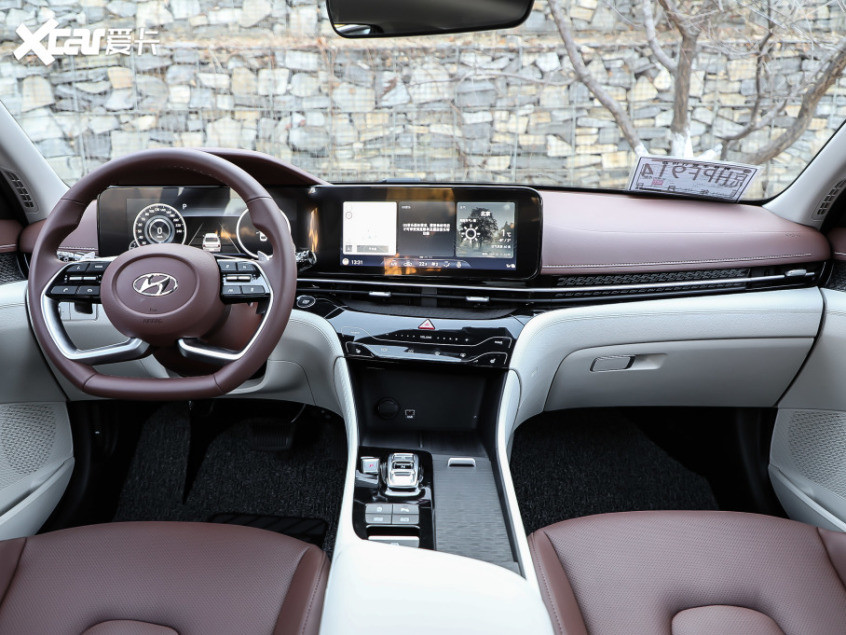 来到内饰部分,全新名图同样延续了现代家族式设计风格,双联屏设计十分抢眼。新车提供黑色及棕色2种内饰颜色,一体式双12.3英寸大屏对于车内的科技感提升非常明显,其中12.3英寸中控屏操作起来还是十分流畅的,功能性也很全面,除了导航、QQ音乐等常用功能外,还拥有BlueLin等特色APP。