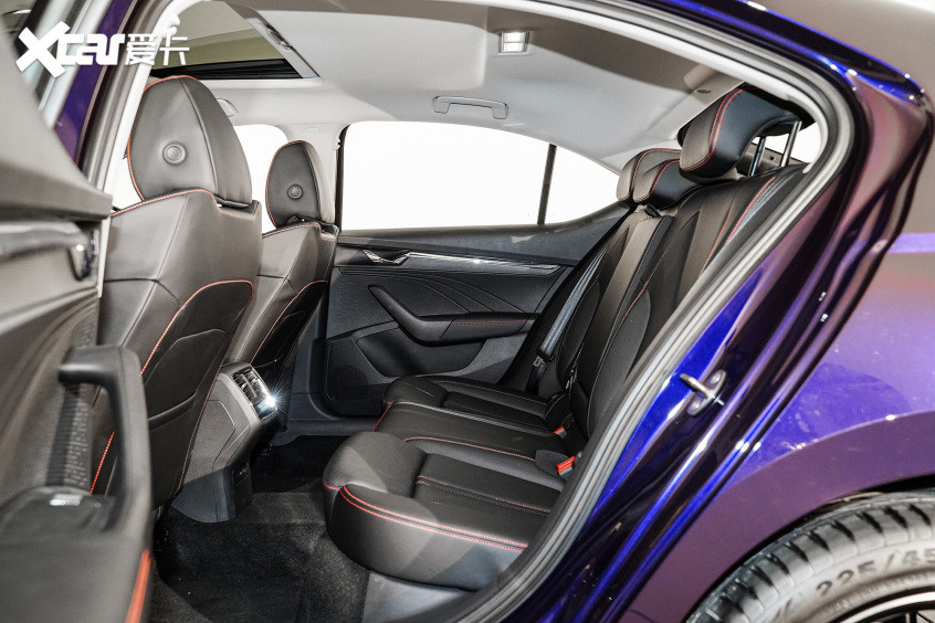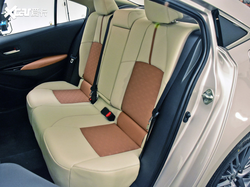 后排座椅在材质、工艺、配色上皆与前排保持一致。厚实的填充物坐上去之后会有一定下陷感,舒适性还不错,唯一的小瑕疵就是座椅靠背角度稍有些直。