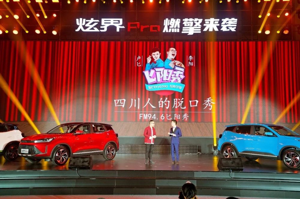 随着现场氛围的不断升温,炫界Pro在万众瞩目下燃擎亮相。西南散口《匕阳秀》节目主持人卢匕、李阳,现场通过创新、趣味的多元互动形式将炫界Pro的外观颜值、高阶配置等产品亮点生动演绎,并现场揭晓了凯翼炫界Pro的售价以及客户权益,将整个发布会推向了高潮。
