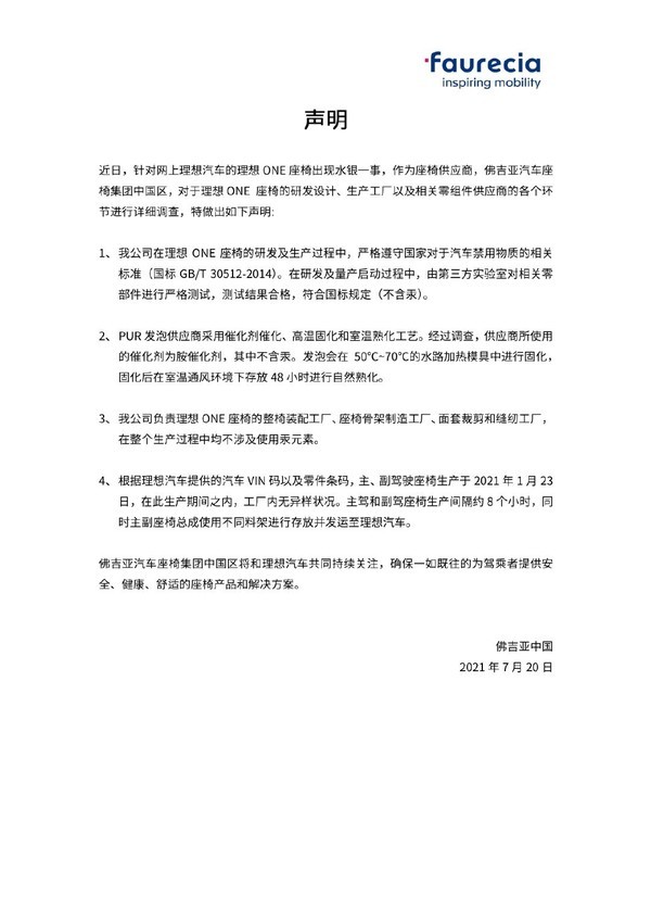 随后不久,理想汽车官博发文回应,坚信座椅中的水银不是生产环节产生的,而是第三方投毒造成的。理想给出了自己解释,全文如下: