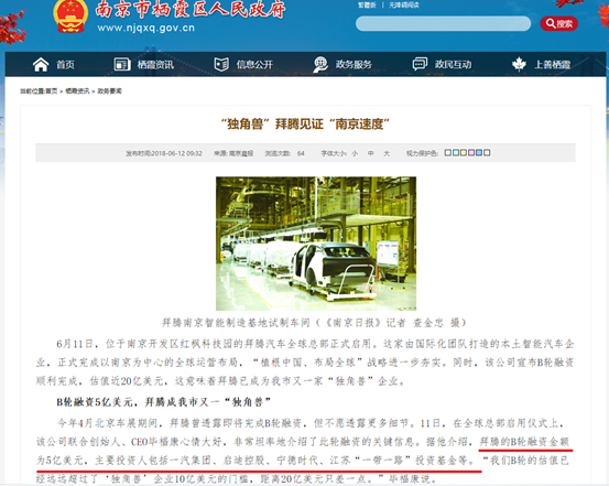 戴雷的冒进让政府承担了大量的扫尾工作,位于南京栖霞区的工厂早已破败不堪,政府也被迫承担部分员工的拖欠薪资。此外,当初刊登在栖霞区人民政府的文章《“独角兽”拜腾见证“南京速度”》也显得格外的扎眼。