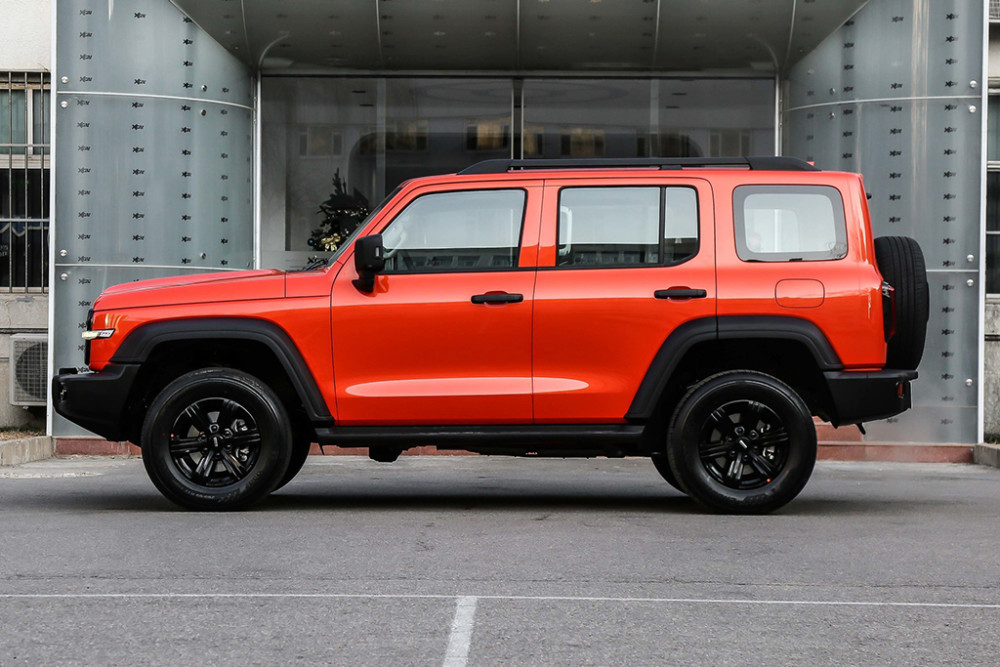 车身侧面与大多数硬派越野车保持一致,上窄下宽的设计看起来很稳健。作为越野版车型,该车还配有黑色的轮圈、黑色的门把手、黑色的外后视镜、黑色的行李架以及与车身同色的轮眉。