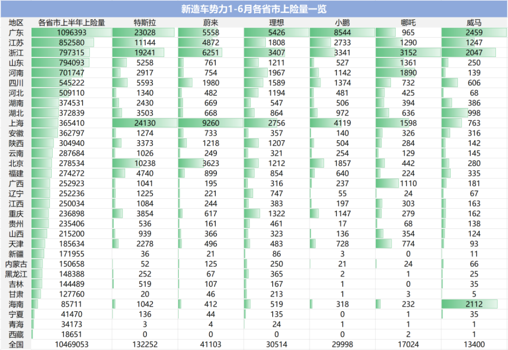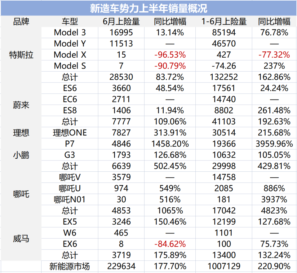 ● 上半年销量总览:同比不翻倍,都不好意思自称新势力