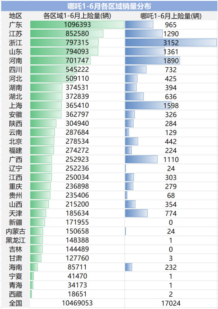 不过在这5个市场之外,哪吒在广西的销量成绩也非常显眼,仅次于其在江苏省的销量,稍微查了一下才发现,哪吒去年在广西南宁投建了一座生产基地。实际上,哪吒上半年在广西省售出的1110辆中,在南宁市的上险量就达到了929辆,背后非市场因素的影响有多大,就不得而知了。