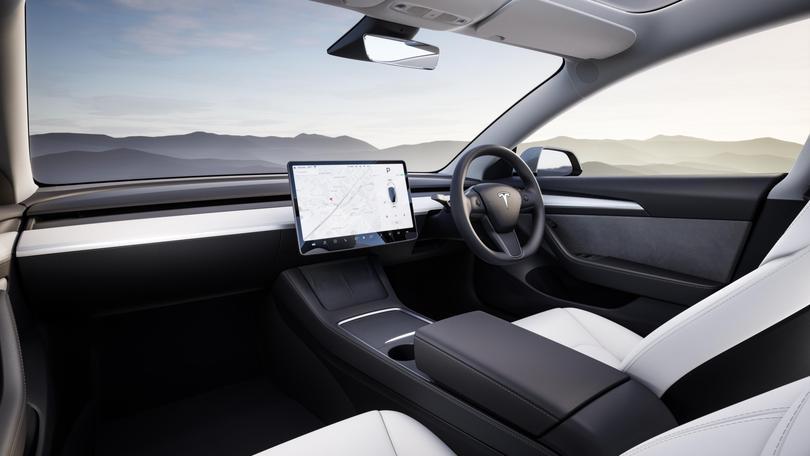 跳入 Model 3,您会惊讶于内部的严酷程度:没有转速计或 Speedo,基本上没有您期望的按钮。方向盘有一对刻度盘,有两个安装在转向柱上的杆,用于指示和选择档位。只有车窗和座椅控制装置是您期望的位置;其他一切——镜子、方向盘的高度和范围、大灯等——都通过巨大的中央屏幕进行调整。它为机舱氛围创造了奇迹,并且是您进入一些特别之处的第一个迹象。
