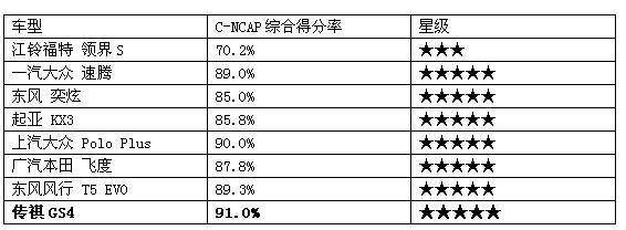 在2021年C-NCAP碰撞的“成绩单”中,传祺GS4凭借91.0%的超高综合得分率,不仅加冕五星评级,更成为 10万级车型中安全性No·1的存在,甚至赶超不少同价位合资车型,证明了自身五星成绩的 “含金量”更高。