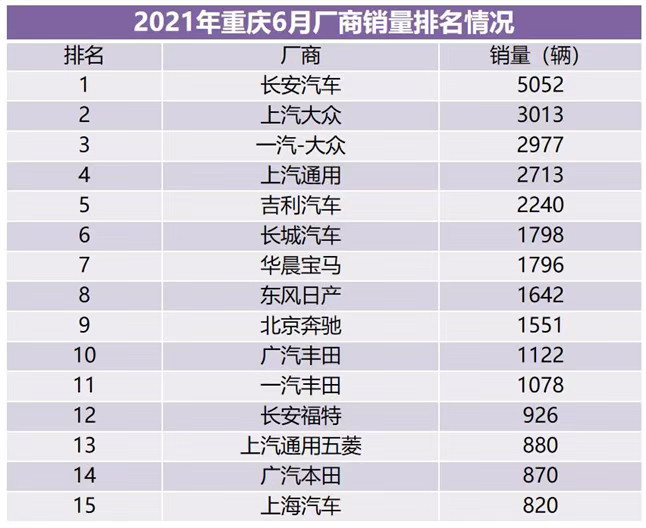 分析认为,受益于经销商面临上半年的销量冲刺以及重庆车展等促进作用,重庆市场6月狭义乘用车销量实现了同、环比双增长,大致符合预期。而随着车市进入淡季,再加上重庆车展对需求的提前透支,以及部分合资品牌芯片短缺问题尚待解决。综合分析,预计7月份市场销量环比将出现一定下滑。