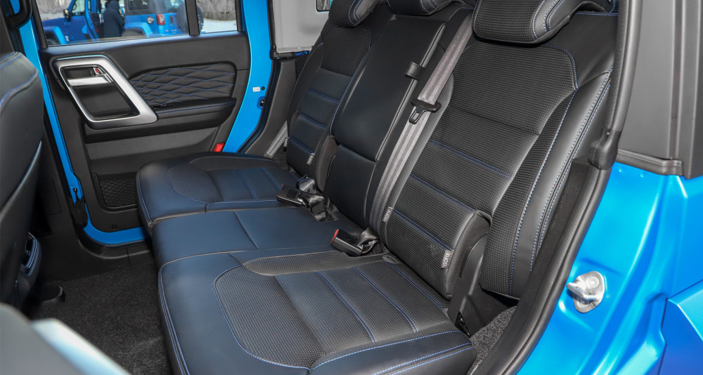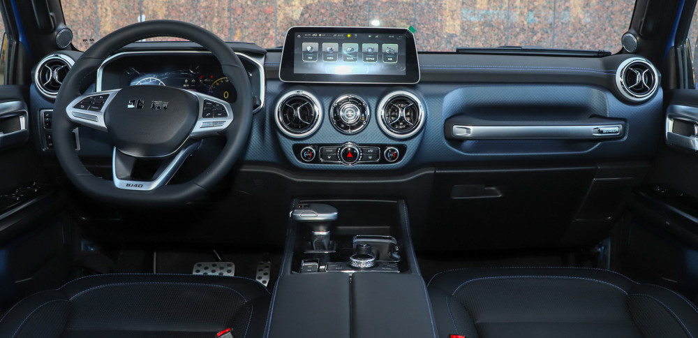 内饰:内饰的材质还是比较高档的,做工的缝线很细致。中控屏的设计简单实用,没有花哨,操作简单。前排电源插座、上下车扶手、越野手柄、座椅高档面料、驾驶员和副驾驶员加热调节都很全面。