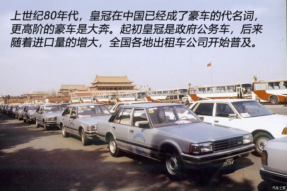如果你问父辈80年代最具代表性的豪车,得到的答案不是“虎头奔”就是皇冠(参数|询价)了,想当年皇冠在国内的地位确实能跟大奔有一拼。80年代初,第六代皇冠(S110)曾被大量进口至国内,其中2.8L车型多被用于公务车使用,而中、低配2.0L车型被不少出租车公司购置。到了第七代(S120)时期,广州率先在1984年大量启用皇冠作为出租车使用,北京首汽出租车公司也在1985年贷款采购了1200辆皇冠作为出租车,皇冠正是从那时起深得人心的。