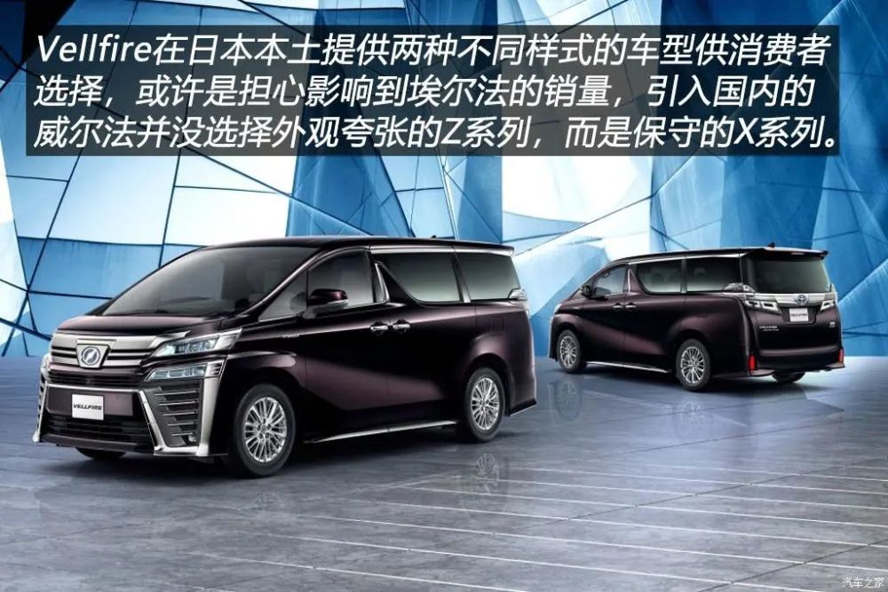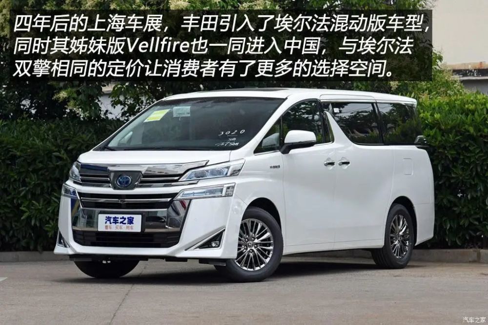2019年上海车展上,丰田带来了埃尔法双擎版车型,其实就是大家期待已久的混动版埃尔法。此后,售价80.5万元和85.6万元的豪华版和尊贵版两款车型被推向市场。此前国内有埃尔法车主为了追求个性,重金将自己的爱车改装为日规Vellfire样式,然而随着2019年上海车展的开幕,埃尔法车主再也不需要用这种方式让自己显得又豪又横了,因为随混动埃尔法一起来到上海车展的还有它的同门兄弟中规Vellfire,官方将其定名为威尔法。
