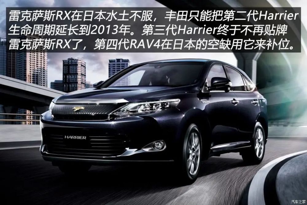 上世纪90年代初,主攻北美市场的雷克萨斯对应日本国内市场的车型都被“下放”到丰田进行销售,比如雷克萨斯LS在日本摇身一变成了Celsior,ES则是Windom,IS为Altezza。日本人购车受泡沫经济破灭影响,也从享乐型转变为实用型,SUV车型当时有了紧凑型的RAV4,为了填补更高级别的市场空白,丰田在1997年推出了第一代Harrier,考虑到前面提到的“下放”原则,Harrier就是辆换了丰田车标的雷克萨斯RX,这样消费者有了比RAV4定位更高的SUV可以选择了,丰田还省去了研发成本和精力,这波操作双赢!