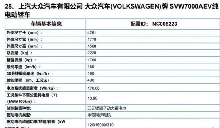 动力方面,上汽大众ID.3搭载一台电机,最大功率125千瓦,最大扭矩310牛·米,最高速度限制在160km/h。电池组容量为57.3千瓦时,NEDC续航里程为430公里。