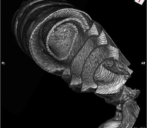 科学家们为了研究鲨鱼如何消化食物,以及在海洋生态系统中究竟扮演什么角色,利用计算机断层扫描仪 (CT) 创建了鲨鱼肠道的高分辨率3D图像,无需进行解剖,就能对复杂的鲨鱼肠道进行研究。因为鲨鱼的肠道是如此的复杂,里面的重叠层如此之多,如果解剖的话,就会破坏组织的结构和连通性,就像拿剪刀去剪卷起的报纸,试图理解报纸的内容一样。
